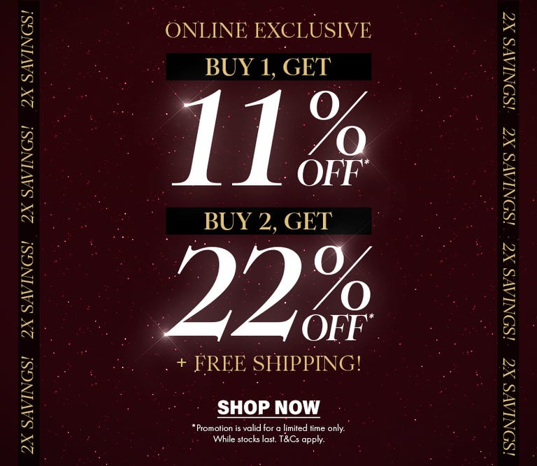 2X the Items, 2X the Savings — 11% OFF 1 item, 22% OFF 2 items and above + FREE Shipping!